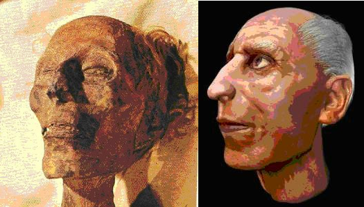 | Фараон Рамсес II. 1279-1213 г. до н.э. Мумия и современная реконструкция. |
