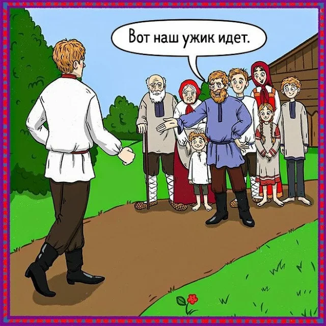 Интересно, что наши далёкие предки, древние славяне, своих родственников называли "ужиками". Вероятно, «ужик» берёт свои истоки от слова «узы», или «узел», то есть обозначает человека, связанного родственными узлами, или узами.