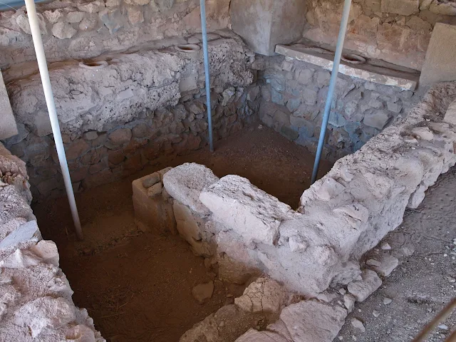 В самом "дворце" обнаружены т. наз. люстральные (очистительные) бассейны, то есть тёмные полуподземные комнаты со ступенями вниз.