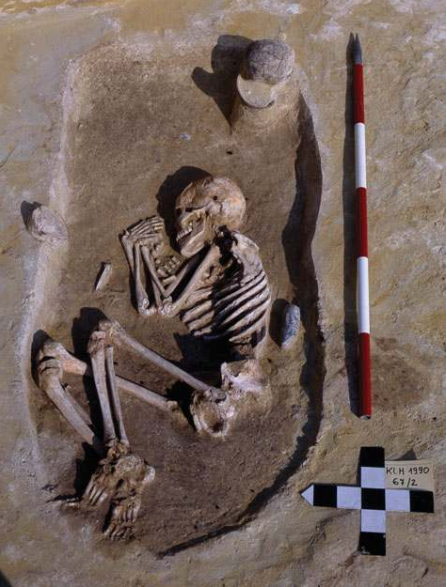 «Стандартный» погребальный обряд LBK, в положении лёжа, ориентация восток-запад и с набором погребального инвентаря. Погребение 60 из Айтерхофен-Эдмюле (Бавария, Германия; взрослая женщина, 40–50 лет).